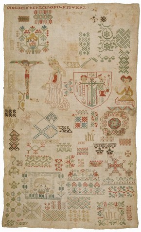 I was keen to get involved with this project because of a personal interest in sewing and a desire to learn more about the history of samplers. I had always thought of them as decorative objects and in my own family they were typically made to mark a life event such as a birth or marriage. What struck me when working with the collection was just how much the role of samplers changed over the centuries, developing from a practical record into something with both a decorative and educational value. With this in mind I decided to write a potted history of samplers, using some of my favourite examples from the collection.